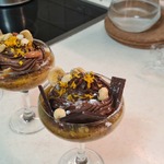 4. Десерт достала из холодильника, украшаю десерт шоколадным кремом (любой насадкой).