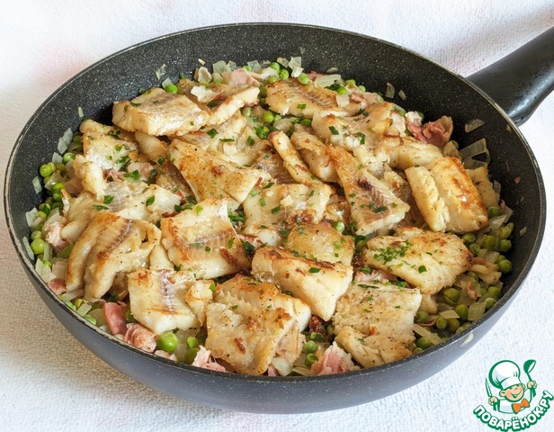 Рецепт «Минтай с зеленым горошком и беконом»: