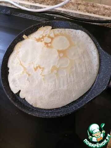 Как только верхняя сторона схватится, можно переворачивать. Рекомендую жарить блины на низкой температуре, чтобы они не поджаривались и тесто быстро рапределялось по сковороде.