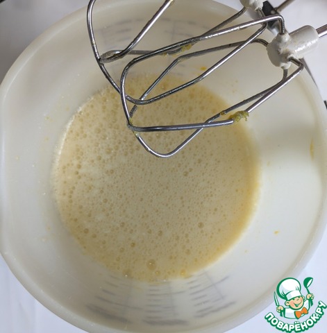 Добавить к яйцам оливковое масло и мандариновое пюре, ещё раз перемешать.