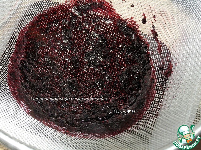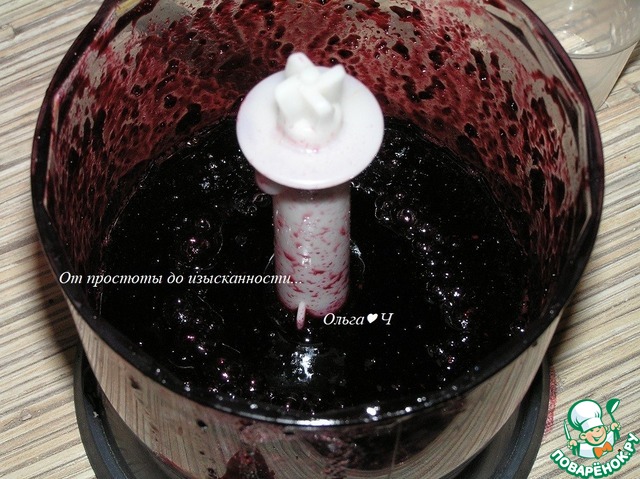 Затем протрите через сито. Желатин нагрейте до растворения (не выше 60*С), добавьте к черничной массе, перемешайте.
