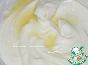 Для лимонного слоя творожный сыр смешайте с сахаром и соком лимона.