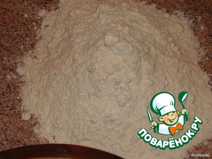 • На стол высыпать муку. Прямо горой. Экономить на муке лучше не надо...