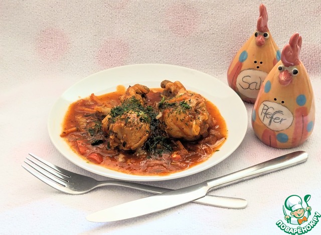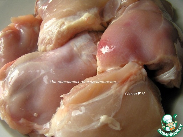 Но при чём здесь Оссобуко?! Оссобуко традиционно готовится из говяжьей или телячьей голяшки. А в этом блюде мало того, что не говядина и не телятина, а курица. Да к тому же даже не голяшки, а бёдра!