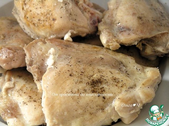Куриные бедра промойте, обсушите, посолите, поперчите, я еще снимаю кожу.