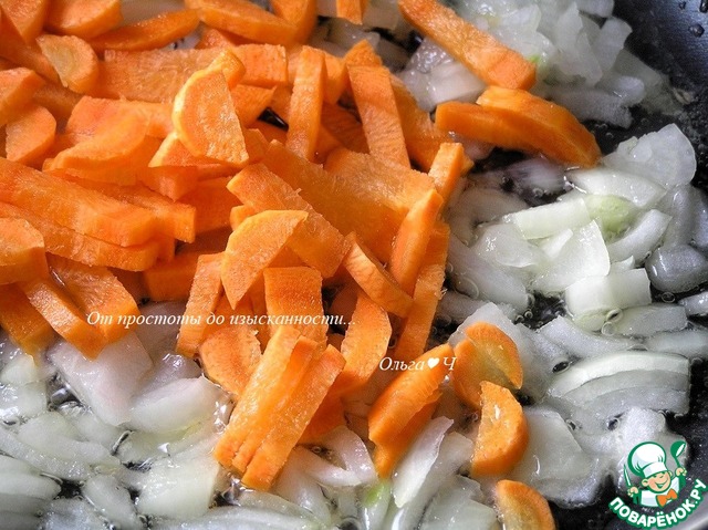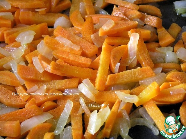 На том же растительном масле обжарьте лук почти до прозрачности, добавьте морковь и сельдерей (у меня в этот раз не было).