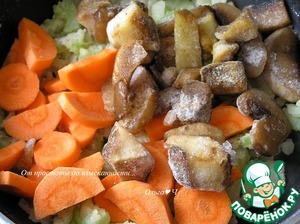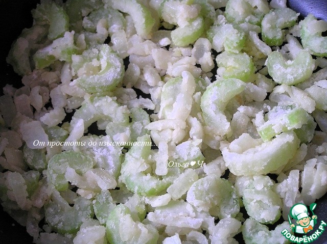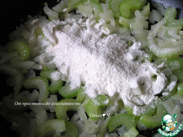 ***Я немного отступила от рецепта и сначала добавила сельдерей, обжарив его с луком, а потом уже добавила муку.***