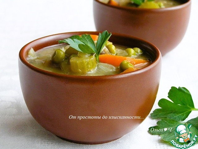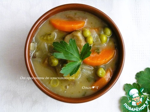 Горошек, репу (вместо репы можно добавить картофель, но я не добавляла) и петрушку.