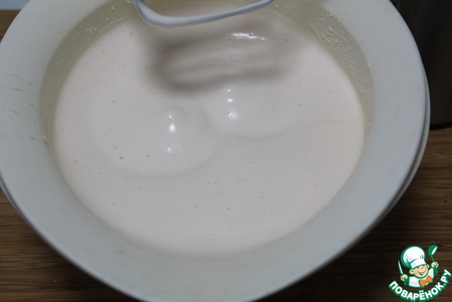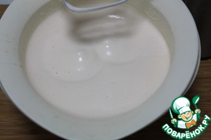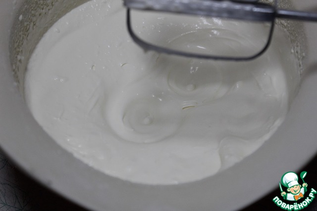 Взбить в пышную пену. приблизительно, обычным миксером 5-7 минут