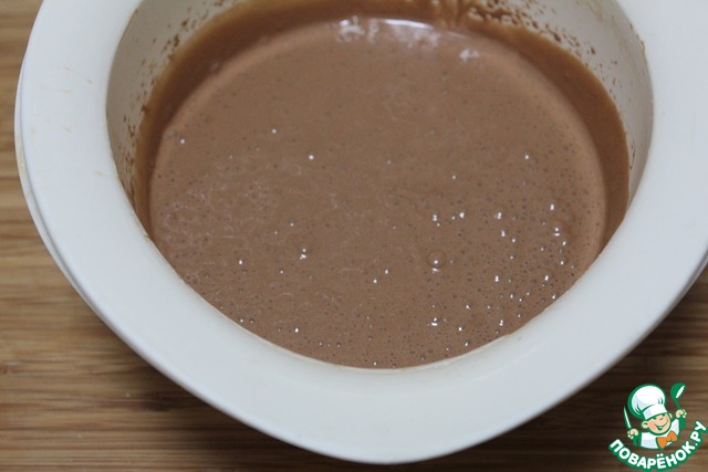 Растопить масло с шоколадом и влить, продолжая работать миксером