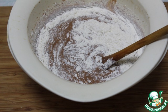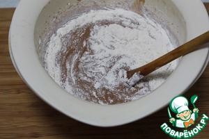 Аккуратно ввести муку, перемешанную с разрыхлителем.