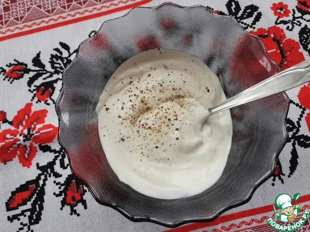 Перемешать сметану, соль, сахар и чёрный перец. Откорректировать на свой вкус.
