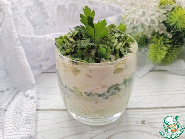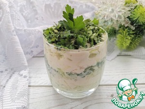 Все ингредиенты можно просто перемешать или уложить слоями. Предлагаю второй вариант.
