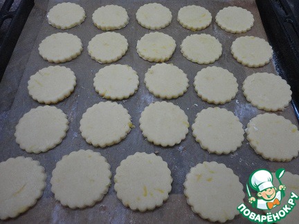 Включите духовку для разогрева на 180 С. Раскатайте тесто в пласт толщиной 5 мм и круглой формой с зубчиками вырежьте печенье.