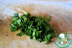 Петрушку промыть, обсушить, мелко нарезать.