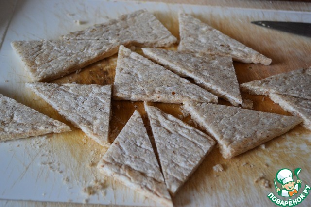 Хлебцы разрезать на треугольники.