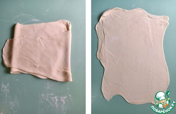 • Сложить втрое, как рулетик, и еще раз раскатать.