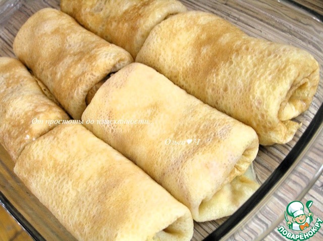 Испеченные блинчики можно полить соусом прямо в форме или подавать отдельно.