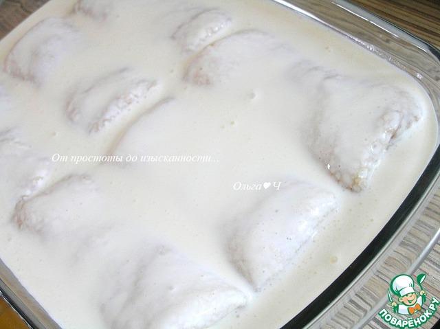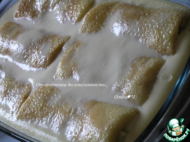 Аккуратно заверните и уложите в смазанную маслом форму для выпечки.