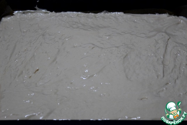 Противень проложить пергаментом и выложить тесто, разровнять.