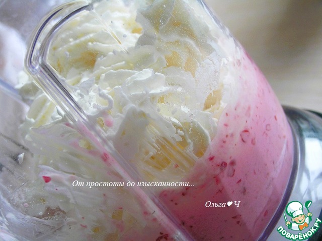 Отдельно взбейте сливки до мягких форм пик, добавьте к брусничной массе.