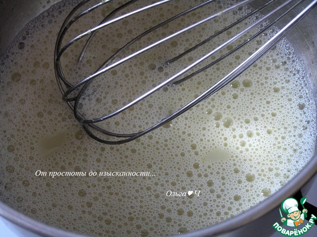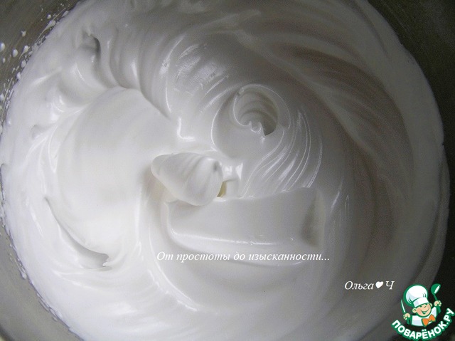 Приготовьте бисквит. Выложите белки в небольшую кастрюльку, добавьте 30 г сахара и немного нагрейте (до температуры 45*С), все время помешивая венчиком, чтобы белки не пристали ко дну.