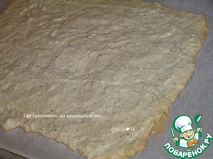 Достаньте противень, переверните лист с бисквитом на ровную поверхность и снимите бумагу для выпечки.