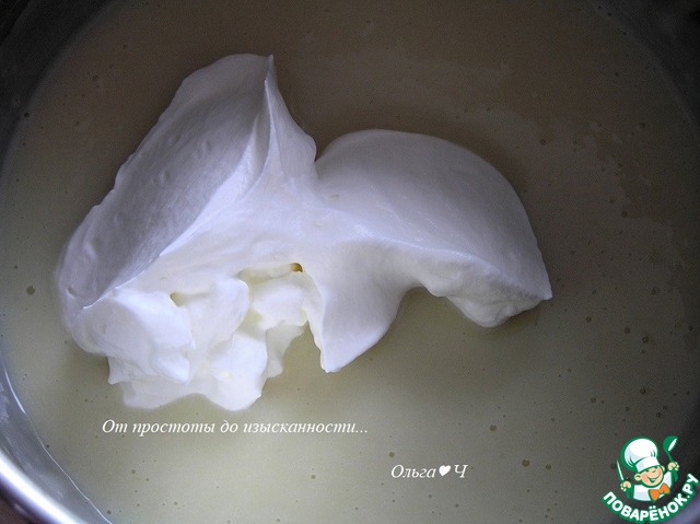 Взбейте сливки до устойчивых форм пик и аккуратно примешайте в крем.