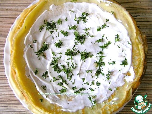Подавайте блинчики сразу или немного разогрейте в микроволновке. Украсьте веточками укропа и подавайте.