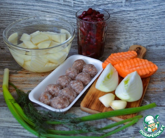 Ингредиенты для «Рагу с фасолью и фрикадельками»: