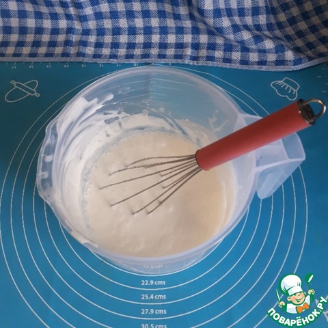 Добавить муку к кефиру и все хорошо перемешать, накрыть крышкой или полотенцем и оставить на 15-20 минут.