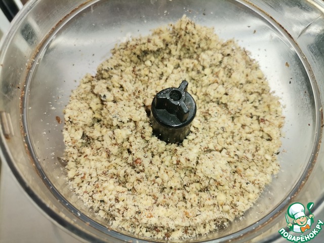 Грецкие орехи измельчить в блендере.