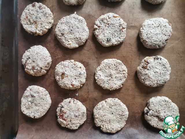 На противень застеленный силиконовым ковриком выкладываем печеньки, которые формируем смоченными в воде руками. Выпекаем в духовом шкафу при температуре 170 градусов 25 минут, до золотистого колера.