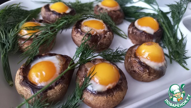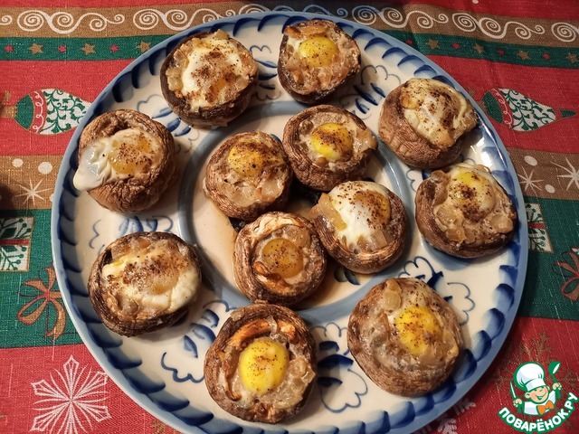 Рецепт «Фаршированные шампиньоны с перепелиными яйцами»:
