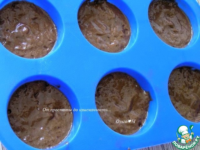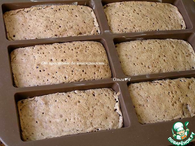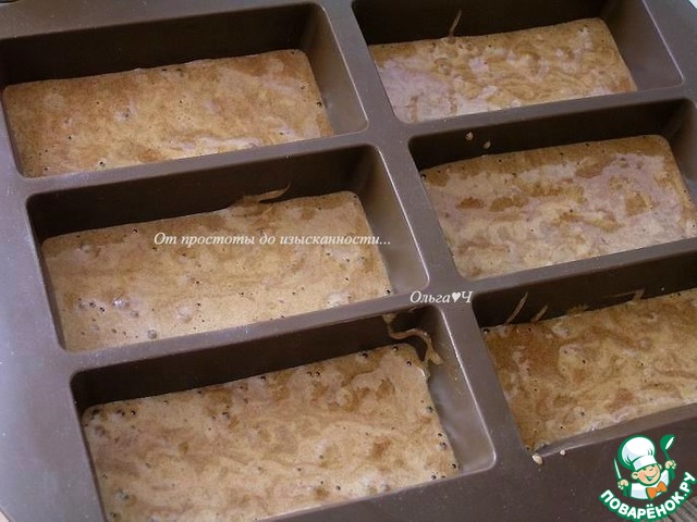 Разлейте тесто по формочкам. У меня 6 прямоугольных.