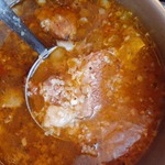 Мясо остыло, теперь отделяем его от кости и нарезаем не большими кусочками. Отправляем мясо снова в бульон. Кастрюлю ставим на плиту и доводим до кипения, затем добавляем промытый рис, перемешиваем, чтобы рис не прилип ко дну, доводим до кипения и кипятим на медленном огне 10 минут.