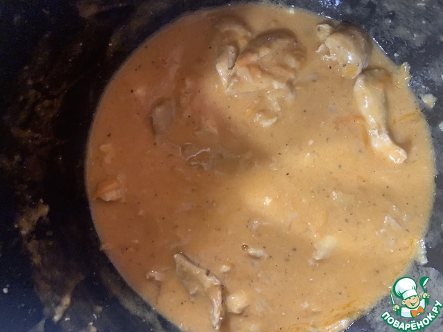 В воде смешать сметану и томатный соус до однородной консистенции, вылить в сковороду, перемешать, убавить огонь, накрыть крышкой, тушить 10мин, затем добавить лавровый лист и тушить еще 5мин. Дать настояться минут 15 - 20.