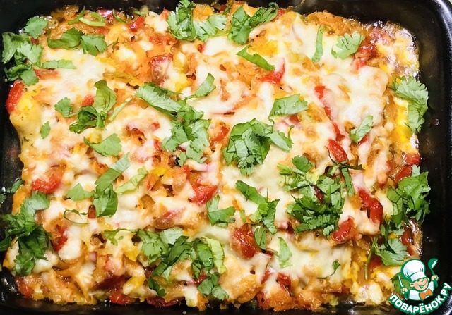 Можно за 15 минут до готовности посыпать сыром, чтобы он расплавился. Но тогда блюдо будет более калорийным.