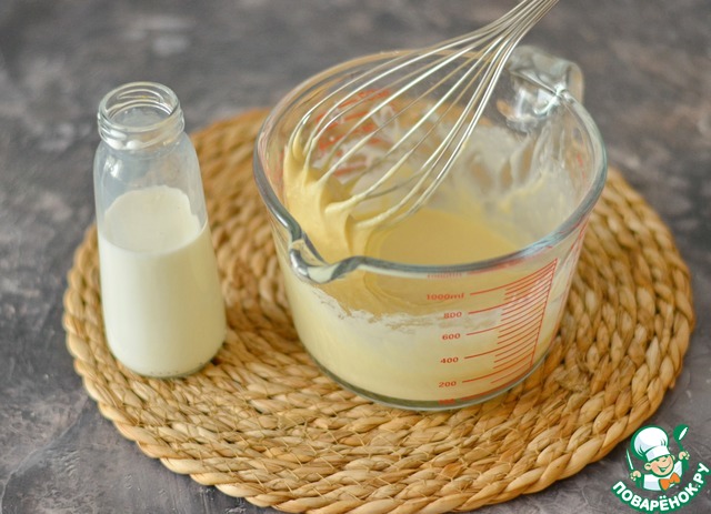 Важный момент. Сливок может потребоваться чуть больше или чуть меньше указанного количества. Ведь мука имеет разную влагоёмкость и размер яиц также бывает разный. Поэтому ориентируйтесь на густоту теста. Самый простой ориентир - тесто по густоте должно напоминать кефир. -