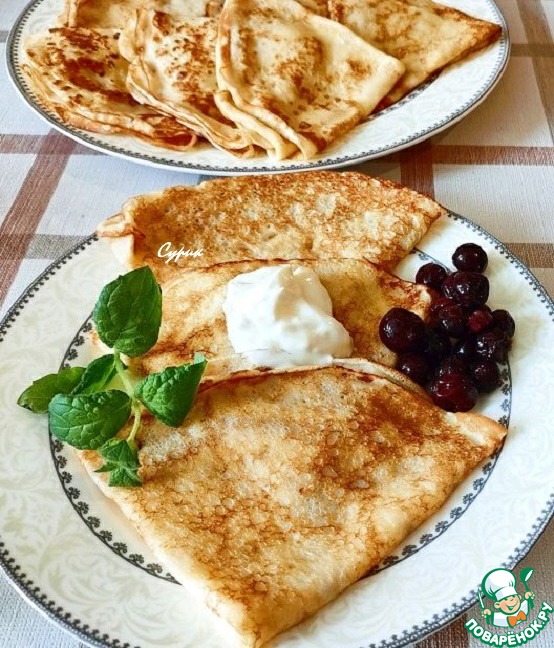 Для выпечки блинов достаточно 10% сливок. Но если есть сливки пожирнее, например 20% то вы также можете их использовать. На жирных сливках блинчики получатся потолще. -