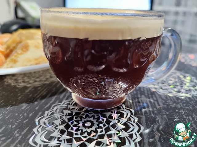 Получается интересный напиток, который сохраняет узнаваемые вкусы и кофе, и цитруса. Сахар или сироп добавляйте по желанию.