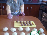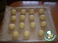 поделить тесто и начинку на 15 равных частей. из каждого кусочка теста сделать лепешечки. в центр кладем начинку и защипываем в форме шарика |