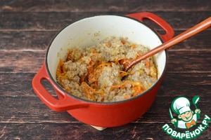 В готовую полбу добавьте пассерованные овощи. -