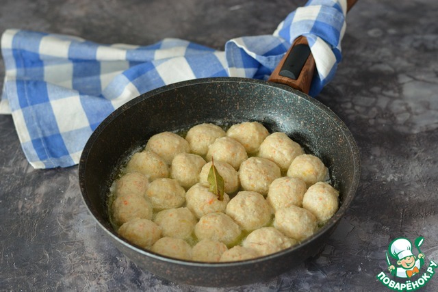Припускайте фрикадельки на среднем огне примерно 15 минут. Сковороду нужно немного потряхивать в процессе приготовления, чтобы фрикадельки не слиплись. -
