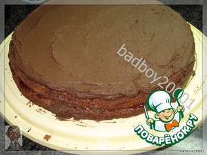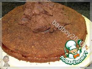 Намазываем сверху, на корж, и шпахтелем красиво разравниваем,