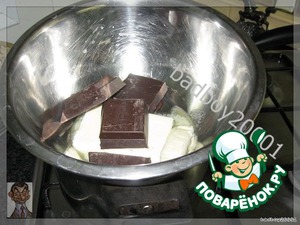 порцию шоколада со 75 г сливочного масла поставить растапливатся на водяную баню,