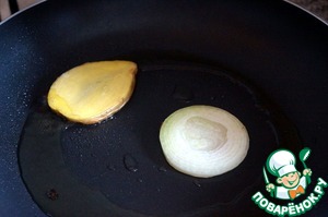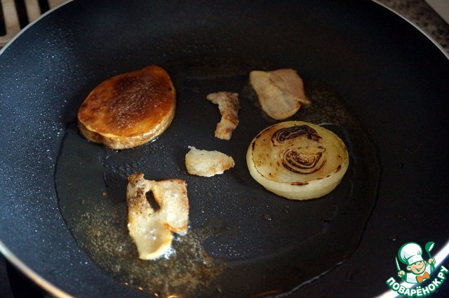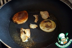 Уложить картошку и лук, обжарить до коричневого цвета.