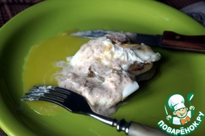 Подготовить соус – для этого смешать по чайной ложке столового хрена и густой сметаны – у меня была деревенская, жирность определить не берусь.