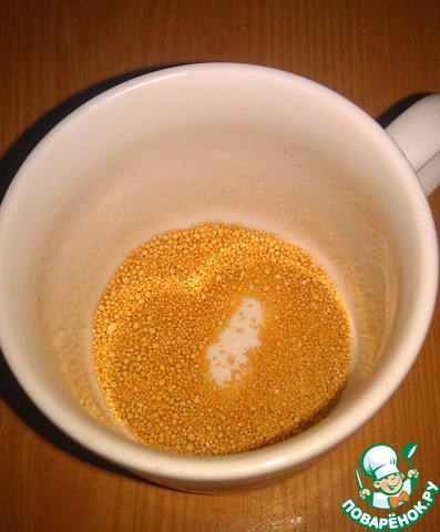 Нагреть воду до очень тёплого состояния. Взять из неё 20 мл и растворить в ней дрожжи (в соответствии с инструкцией на упаковке). Дать постоять минут 10 в тёплом месте.