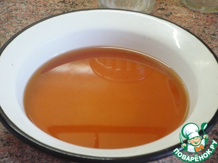 Теплую, даже горячую, воду постепенно добавляйте к карамели. Она вначале начинает бурно кипеть, но не пугайтесь, а решительно и осторожно выливайте всю воду, продолжая помешивать, пока карамель не растворится. Получившуюся сладкую воду перелейте в миску и вынесите на холод остывать.